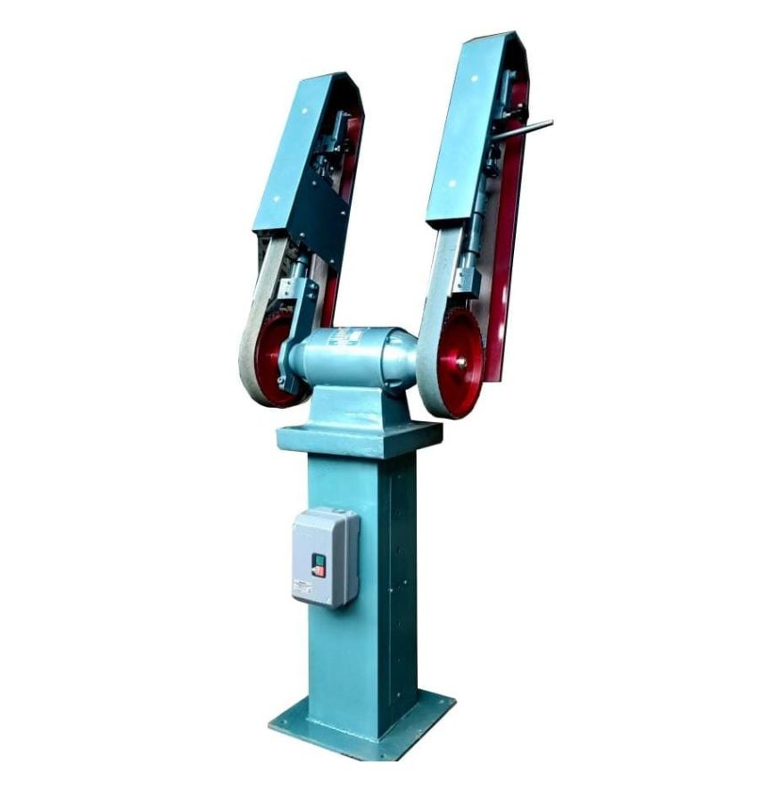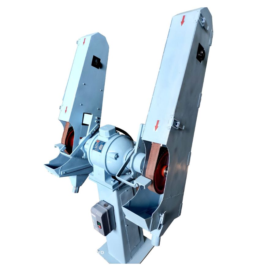 - Construction of the machines are made sturdy and robust to offer vibration free performance. .Machine provided with one no. Abrasive Belt, Serrated Rubber Contact Wheel , Rotary Switch /Starter and Safety Belt Guard.